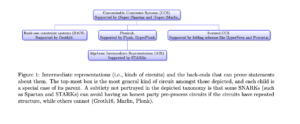 In fact, Spartan and Marlin support a clean generalization of R1CS, Plonkish, and AIR called Customizable Constraint Systems (CCS) (see Figure 1 below). And they do so with performance benefits. For example, Plonk requires the prover to commit to the value of every “wire” in a circuit, and uses so-called copy constraints to ensure that the values assigned to every wire coming out of a single gate are equal. These commitment costs are typically the prover bottleneck. Accordingly, engineers using Plonk and its variants have devoted significant effort to developing notions such as “relative references,” with the goal of minimizing copy constraints in Plonkish circuits.