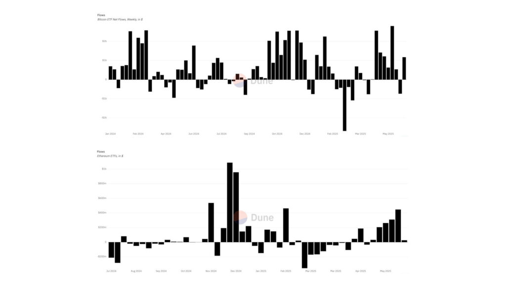 June 2025: $45B total ETP net flows ($42B BTC, $3.4B ETH)