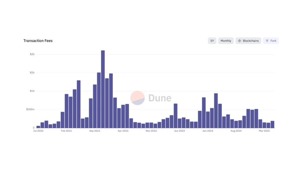 The total amount of USD-denominated transaction fees shows the aggregate demand — that is, the real economic value — for blockspace on a given chain.