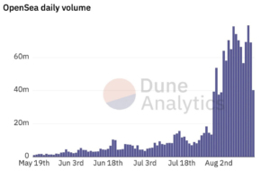 9/ This year NFTs and gaming were the next wave of blockchain apps to break out: NBA Top Shot, CryptoPunks, Axie Infinity, etc. You can see this reflected in the rapid growth of gross sales at OpenSea, the largest NFT marketplace: