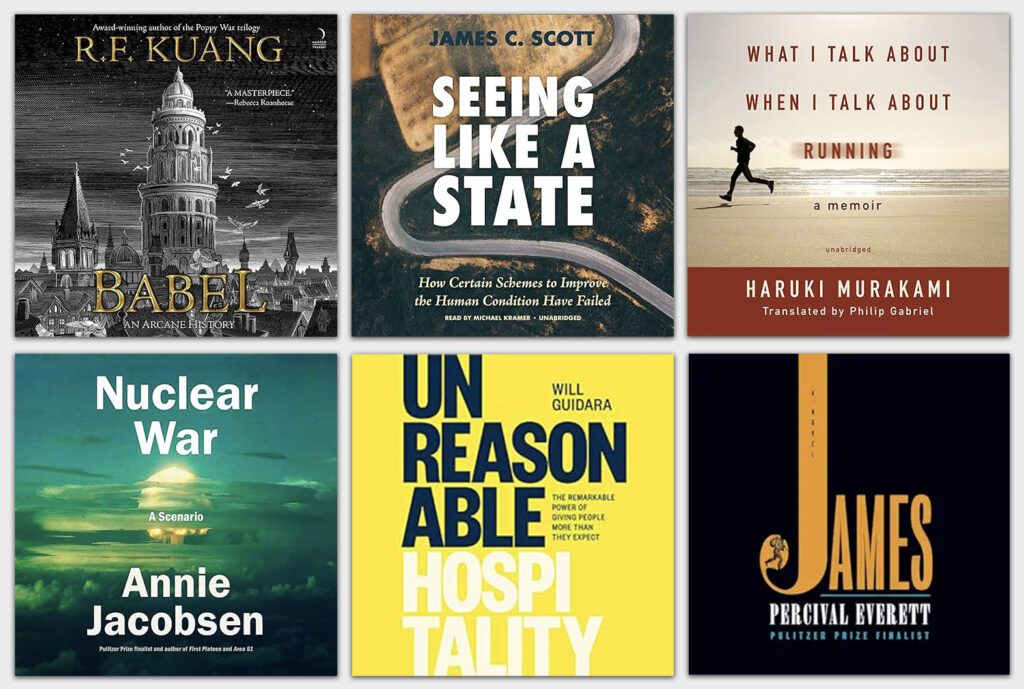Repeat recommendations reveal our longstanding interests. This season’s repeats included Unreasonable Hospitality by Eleven Madison Park’s Will Guidara on lessons learned in the restaurant business (that are applicable well beyond); Haruki Murakami’s What I Talk About When I Talk About Running, a memoir and meditation on an ancient art; and various books by James C. Scott, the Yale political scientist whose treatises on statehood and social planning are perennial favorites.