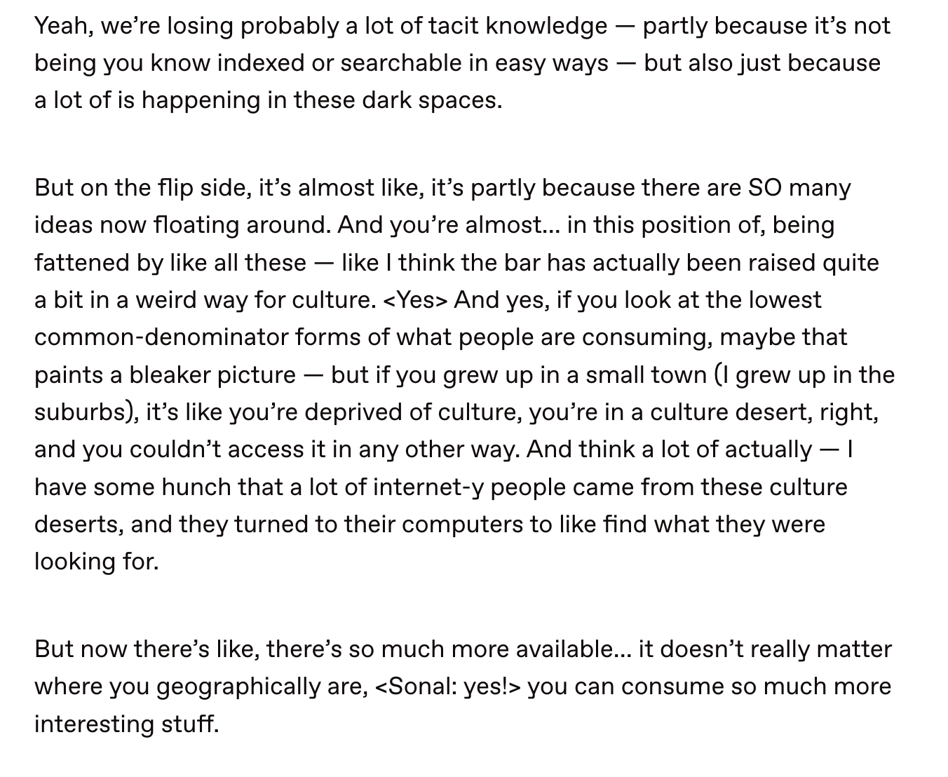 - Underrated ideas, following vs. deciding what’s interesting; from cultural deserts to finding what you’re looking for… on computers