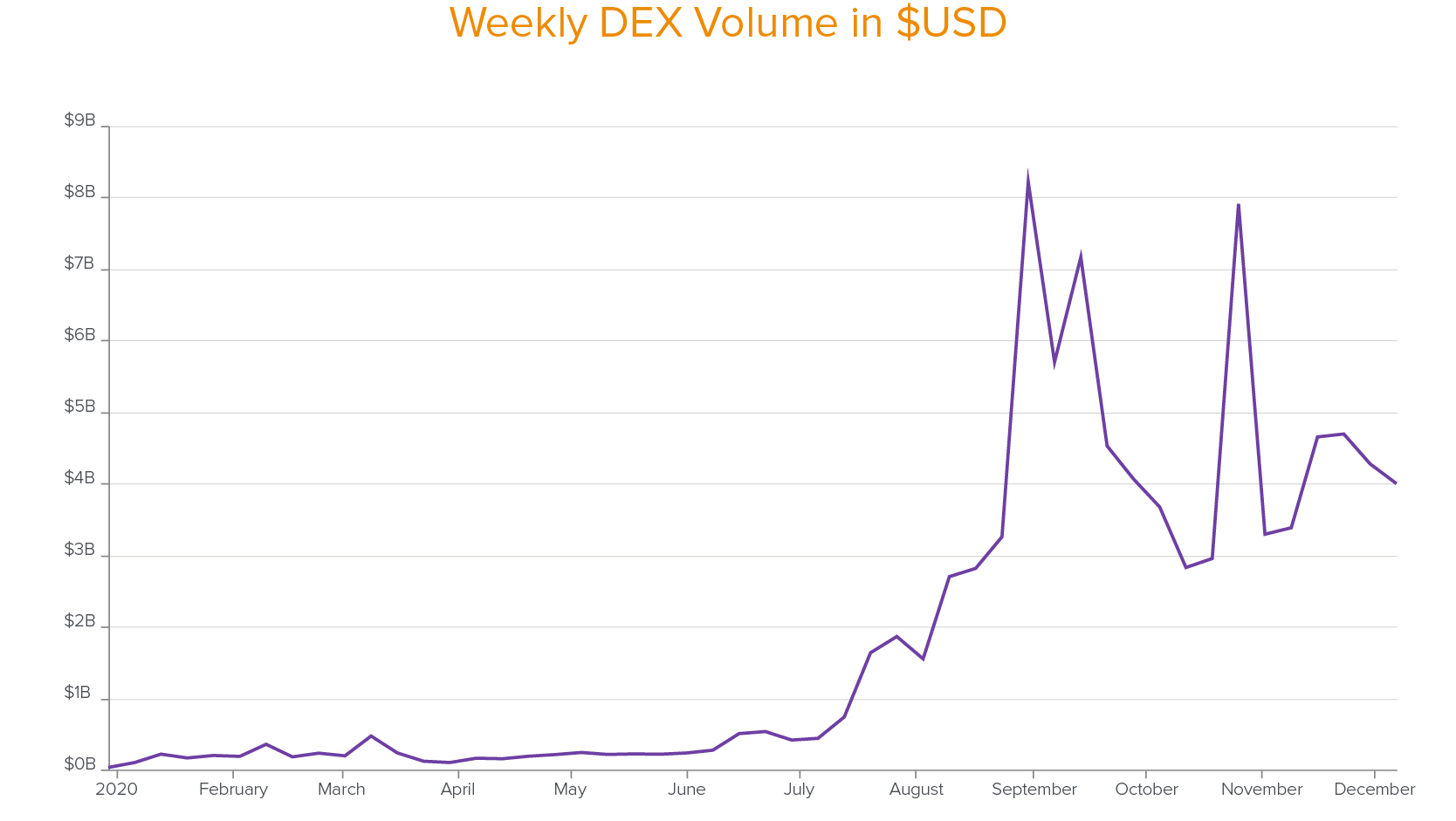 Early in the year, volume on decentralized exchanges (DEXes) was still nascent. By late summer, that volume had reached levels previously only seen on centralized exchanges.