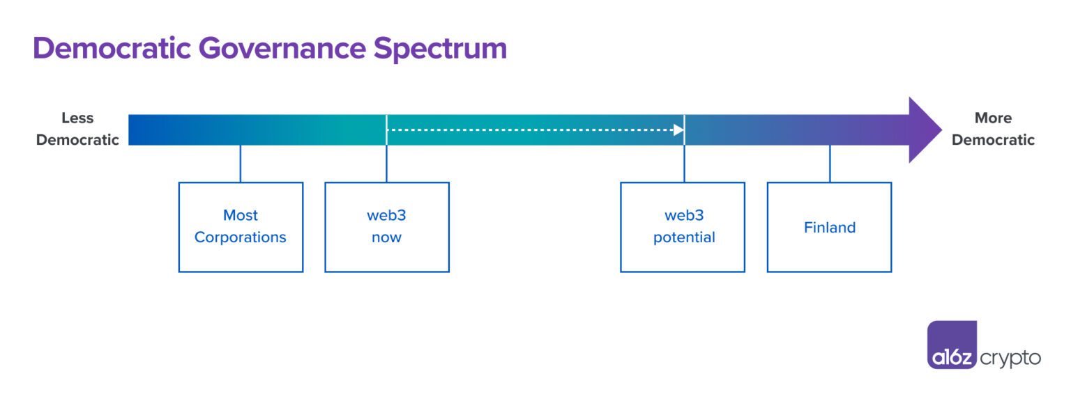 Tensions between competing imperatives—empowering experts versus encouraging broad participation, creating open systems versus capture of those systems by non-aligned actors—have always loomed large. But web3 has the chance to learn from this history, applying hard-learned lessons from democracy and corporate governance to build more effective political systems by:
