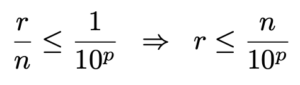 We want this loss to be less than a chosen precision threshold, for example ≤ 1/10^p.