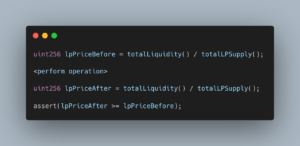 That is, “total liquidity / total LP supply” should never go down as a result of any operation — even after a liquidity exit.