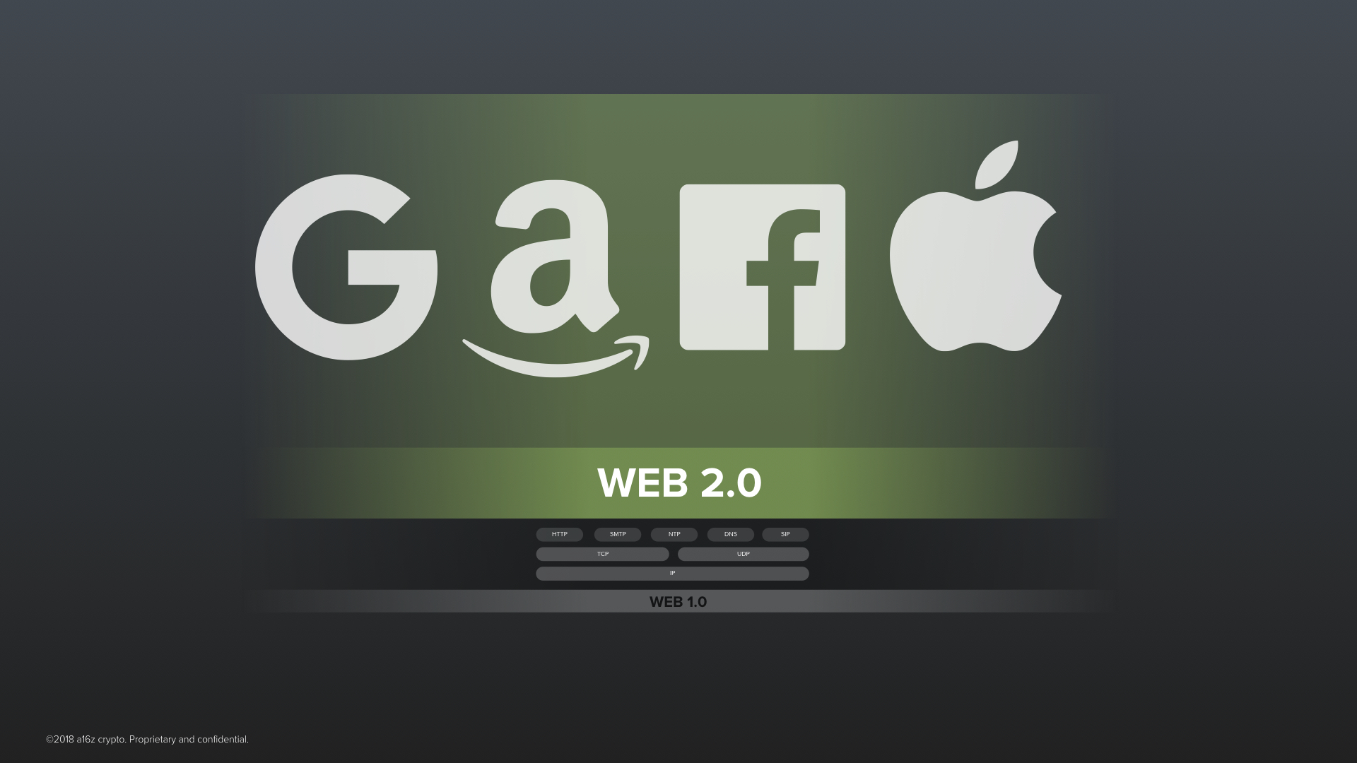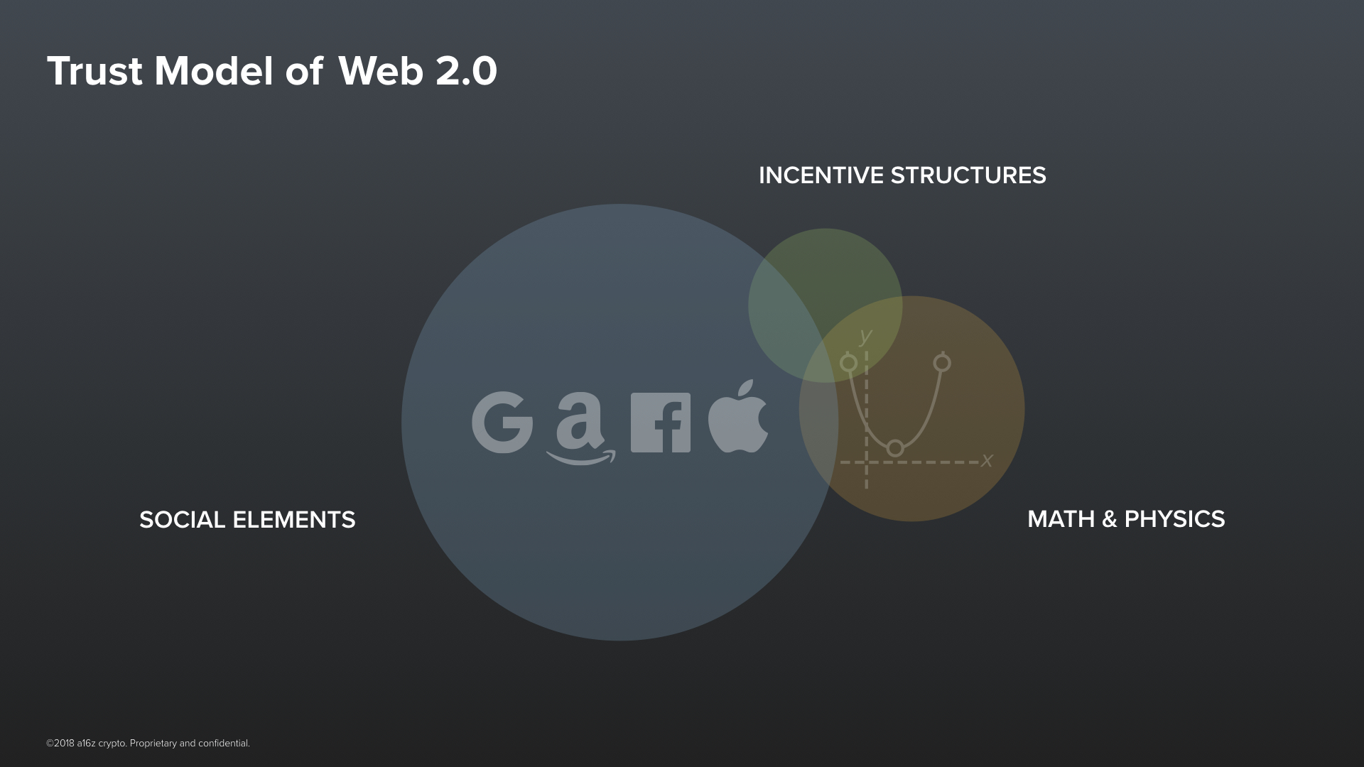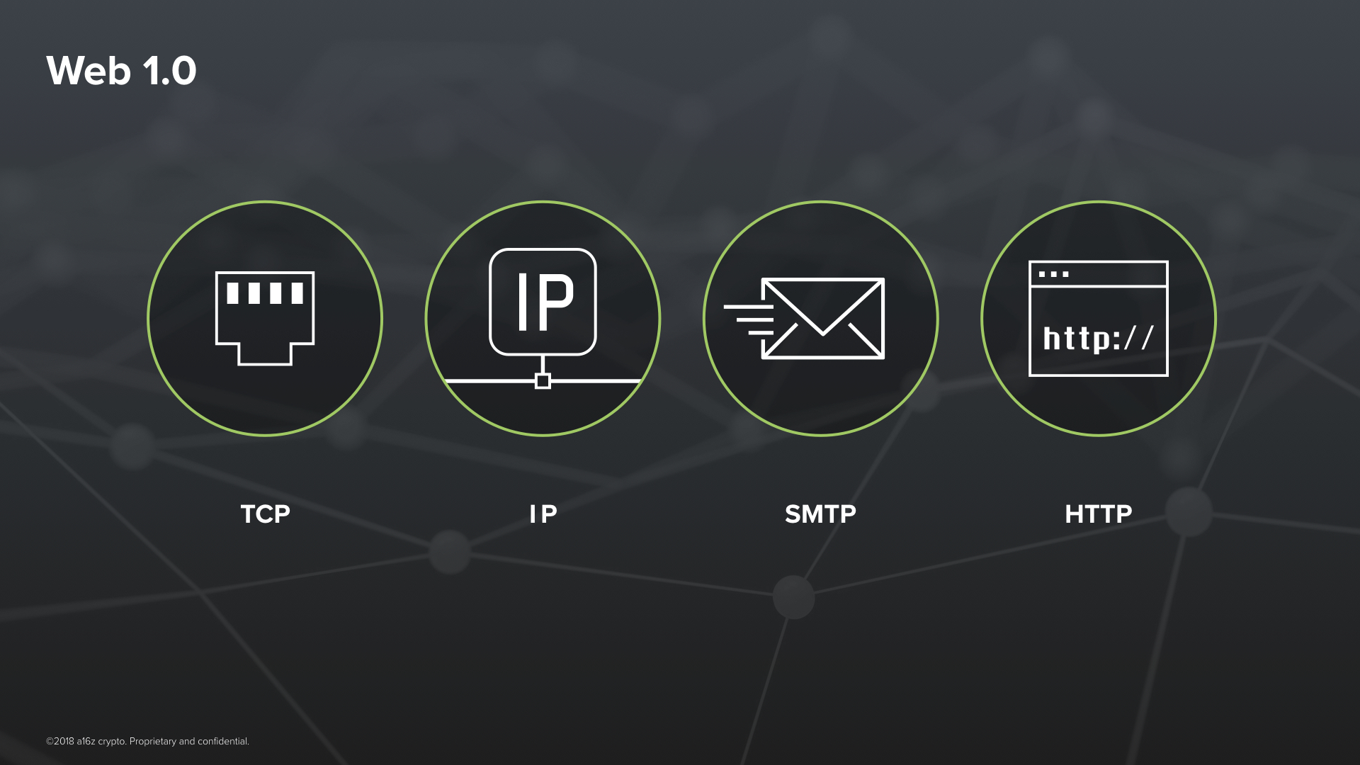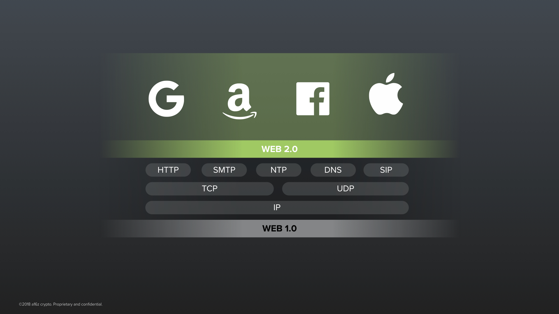 The Internet is one of our first global systems of cooperation where trust is not primarily based on institutions. Or at least it wasn’t –– in the beginning.The early protocols of the Internet, let’s call them the protocols of Web 1.0, were a beautiful thing. TCP, IP, SMTP and HTTP –– they were designed in the 70s and 80s with a spirit of openness and inclusiveness. They were open standards. This means that anyone anywhere has the ability, on equal footing, to build on top of them without anyone’s permission. Case in point, hundreds of open source implementations exist. The code for these protocols inside of your phone right now, whether it’s an iPhone or an Android phone, is directly based on open source code.Think about this: It is a great feat of human trust and cooperation that today there exists a single, global Internet rather than numerous, disjoint networks that fracture along our many divides. Hundreds of countries and thousands of companies around the world, many with conflicting incentives, have magically converged on running exactly the same protocols, down to the last bit, to be able to connect with one another.In a perennially polarized world, how can we possibly explain this? It was directly a consequence of open source. Because the core protocols of the Internet were open source, nobody could take unilateral control over them. Their emergence and support was bottom up and mostly neutral. They became the stable and level playing field on top of which the ecosystem of the Internet could be built.Their emergence led to a golden period for innovation. Entrepreneurs and their investors could trust that the rules of the game would remain neutral and fair. But, of course, open source is hard to monetize, so the business model of these startups depended on building proprietary, closed protocols on top of the Internet’s open ones. These were the protocols of Web 2.0.A handful of these startups have since become some of the most valuable companies in human history. You may have heard of some of them. And, of course, thanks to these companies, billions of people have gotten access to great new technologies, mainly for free. And that has been a truly phenomenal thing. As of late, these companies don’t get enough credit for that.But there is an important caveat, the tech giants of web 2.0 have become our new trusted intermediaries and gatekeepers on the Internet. For most of what we do on the Internet today, like searching the web, connecting with people, sharing media. We now are forced to place significantly more trust on proprietary and opaque code written by these companies.
