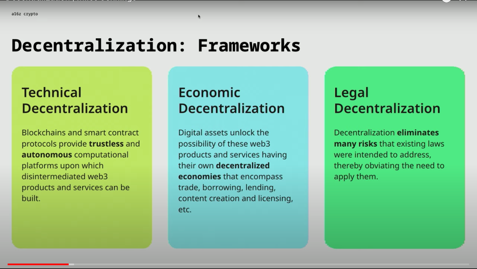 So what do we do about digital assets in web3? If a web3 system can eliminate significant information asymmetries – and it can eliminate reliance on managerial efforts — then we can say that the system is sufficiently decentralized, such that securities laws are no longer necessary to apply. (Of course when it comes to legal decentralization, founders are often confused and the rules are currently not as clear as they should be because the SEC hasn’t set them out in a manner that’s very clear.)