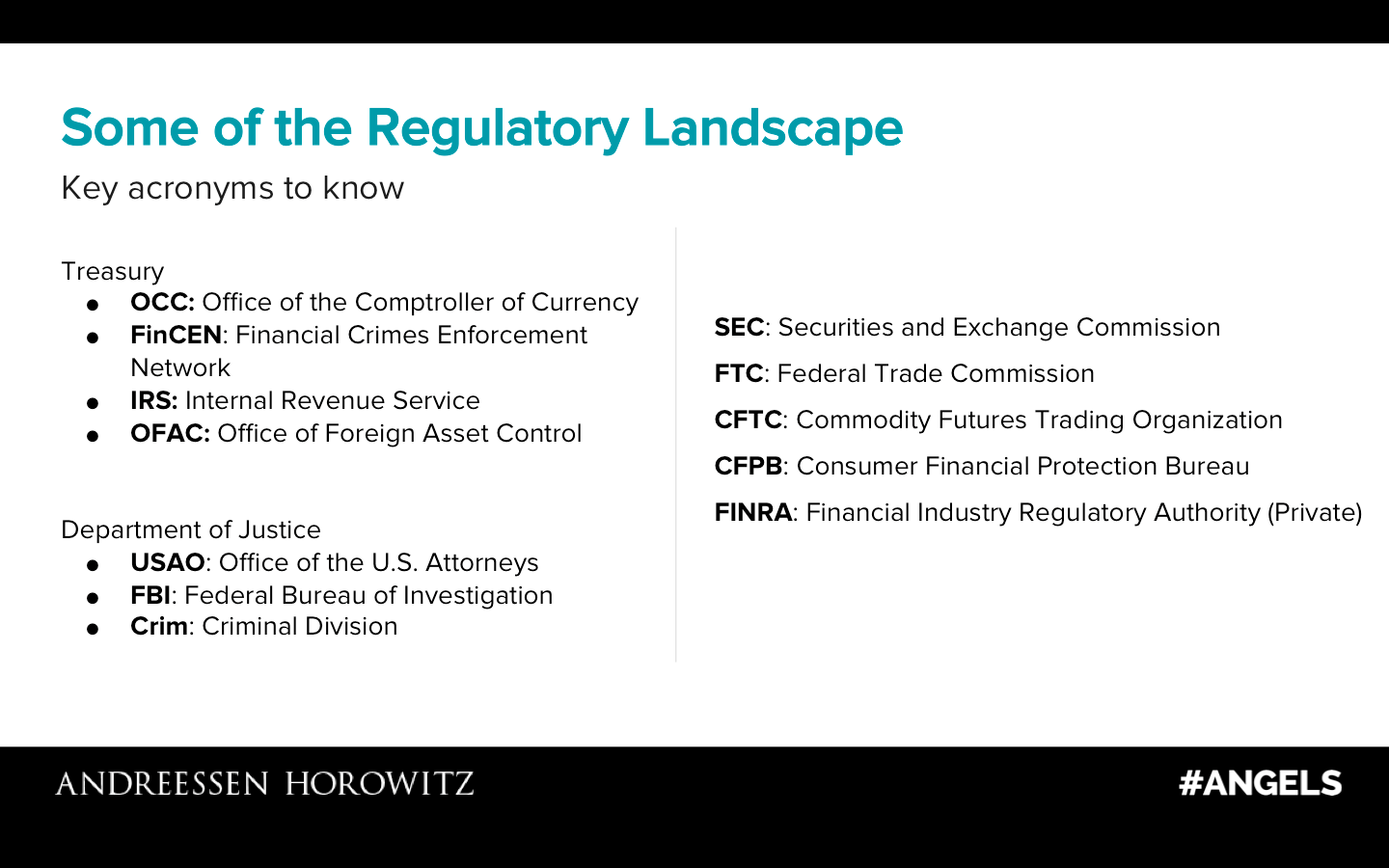 What’s going on, regulation-wise, in crypto? How should people who want to join a company or build something new in the space think about the regulatory environment? What to make of all the headlines, or the “alphabet soup” of agencies potentially involved in regulating crypto? This episode of the a16z Podcast shares principles — as well as key players/acronyms to know — for sorting the signal from the noise in the regulatory landscape for crypto.